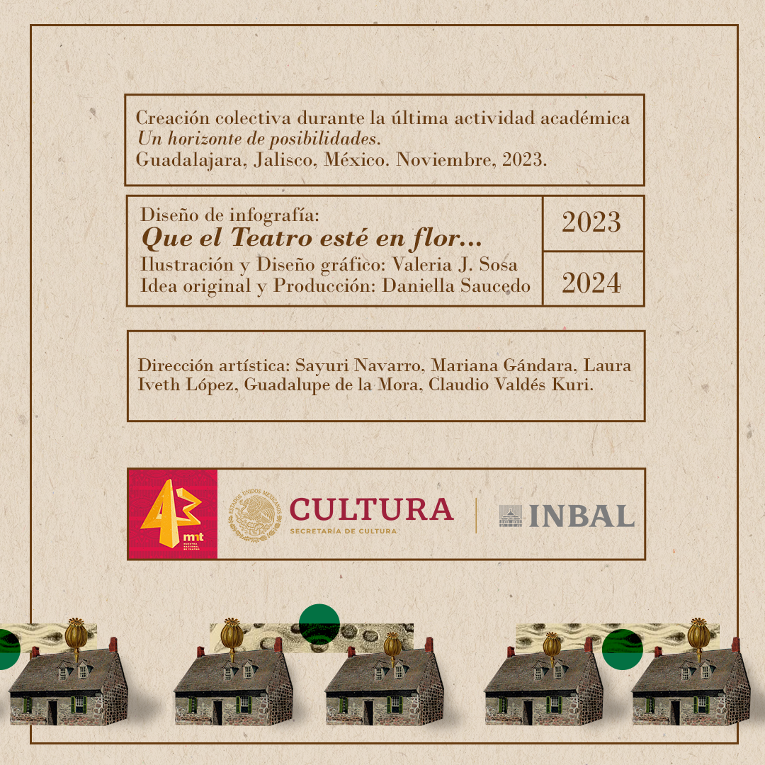 La infografía es compartida por la actriz y productora Daniella Saucedo, representante de Michoacán del programa “Jóvenes a la Muestra” de la 43º Muestra Nacional de Teatro, Guadalajara, 2023.